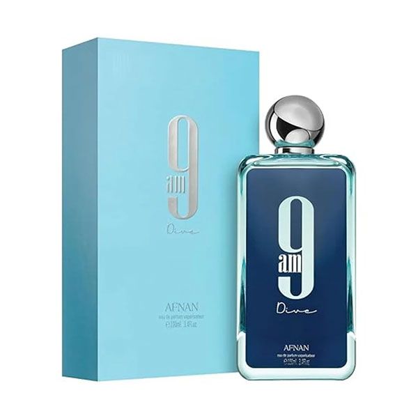 Afnan 9PM Dive este o apa de parfum unisex cu deschidere proaspata si fructata de lamaie, mar si mandarina ce ofera energie si luminozitate. Inima de lavanda, muscata si note marine aduce echilibru aromatic, iar baza calda de mosc, cedru si boabe de tonka confera persistenta si profunzime.