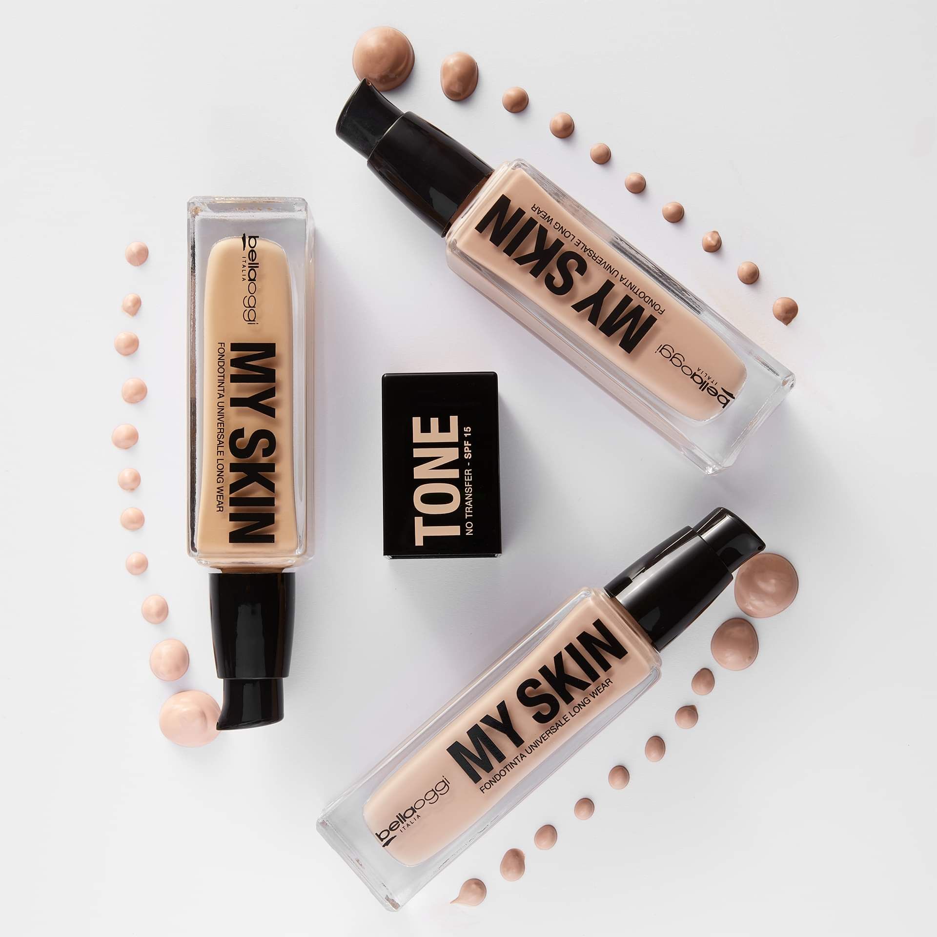 Descopera fondul de ten MY SKIN TONE de la Bellaoggi, o textura de lunga durata ce adera cu toate tipurile si tonurile pielii, lasand un finis semi mat si acoperire completa. Are o formula fina, fara parabeni, imbogatita cu ingrediente active: extract de ovaz pentru tonifierea tenului, extract dintr-un mix de fructe ce asigura hidratare si un derivat natural al florilor de nasturtium, ce sporeste luminozitatea si vitalitatea tenului si ajuta la oxigenarea pielii.