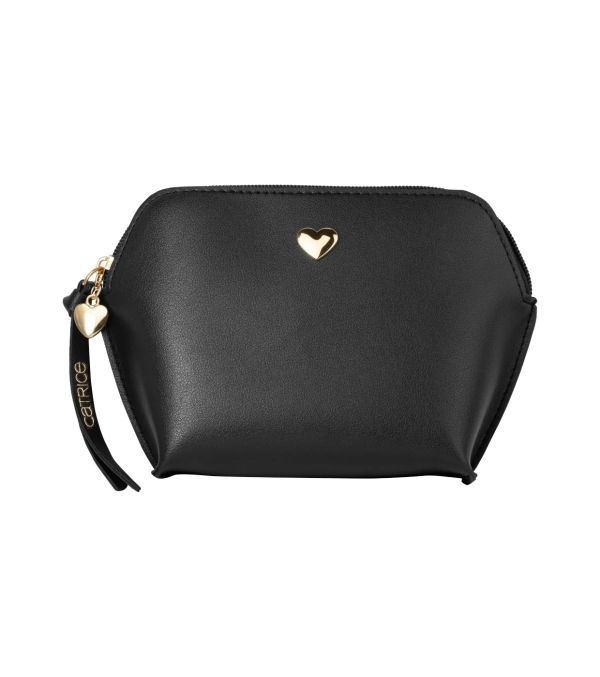 Te bucuri de un portfard negru, elegant ce imita pielea, accesorizat cu insertii aurii. Este incapato si potrivit pentru produsele tale de machiaj preferate.