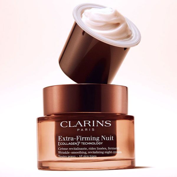 Expertiza Clarins în domeniul fermității pielii se concretizează în această formulă de noapte ce vizează refacerea rezervelor de colagen. Tehnologia exclusivă [COLLAGEN]³ îmbină polipeptida de colagen cu extractele de pecan și mitracarpus pentru a combate semnele îmbătrânirii și a crește capitalul de colagen al pielii cu până la 53%. Un element distinctiv este prezența a peste un milion de peptide de avocado care susțin procesele naturale de regenerare ale epidermei în timpul repausului nocturn. Niacinamida completează această acțiune prin îmbunătățirea texturii pielii și stimularea strălucirii naturale. Textura cremei este special creată pentru a fi bogată și reconfortantă, fără a lăsa o peliculă grasă la suprafață. Utilizarea constantă contribuie la un aspect liftat și odihnit, pregătind tenul pentru agresiunile zilnice. Această variantă refill reprezintă o alegere sustenabilă, fiind concepută pentru a fi introdusă în borcanul original Extra-Firming.