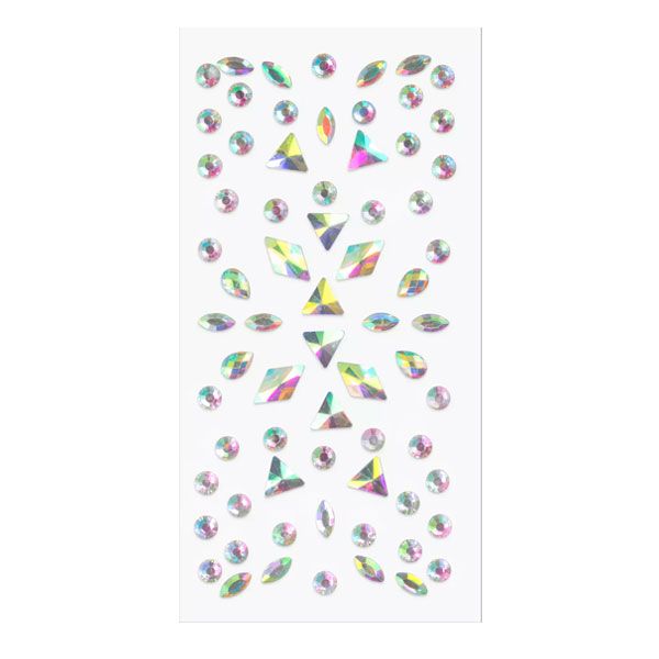Bijuteriile pentru față essence CRYSTAL CRUSH mix & match includ un set de 65 de pietre autoadezive cu finisaj holografic. Disponibile în diverse forme și dimensiuni, permit personalizarea machiajului pentru festivaluri sau evenimente speciale. Pietrele iridiscente reflectă lumina în nuanțe variate și se aplică ușor pe pielea curată, fiind simplu de îndepărtat.