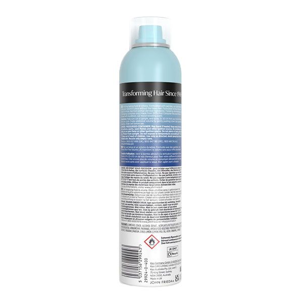 John Frieda Volume Lift Fixativ oferă o susținere puternică și un volum lejer, menținând în același timp textura mătăsoasă a părului. Formula sa bazată pe peptide asigură un control de lungă durată fără să încarce firele de păr. Această pulverizare ultra-fină este rezistentă la umiditate și permite îndepărtarea rapidă a produsului prin periere.
