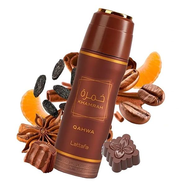 Lattafa Khamrah Qahwa transpune cultura cafelei din Emiratele Arabe Unite intr-o formula de spray de corp versatila. Compozitia echilibreaza aromele intense de cafea cu accente de condimente si note dulci, fiind adecvata atat pentru barbati, cat si pentru femei. Aceasta creatie ofera prospetime de durata, reprezentand eleganta moderna si traditiile Orientului Mijlociu intr-un format practic.