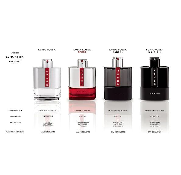 Parfumul Luna Rossa Black este a 7-a editie din gama de parfumuri Luna Rossa. Intreaga colectie este inspirata de provocarea Prada Luna Rossa, un sindicat italian de curse cu barca cu panze, de a participa pentru prima data la concursul pentru Cupa Americii din anul 2000.